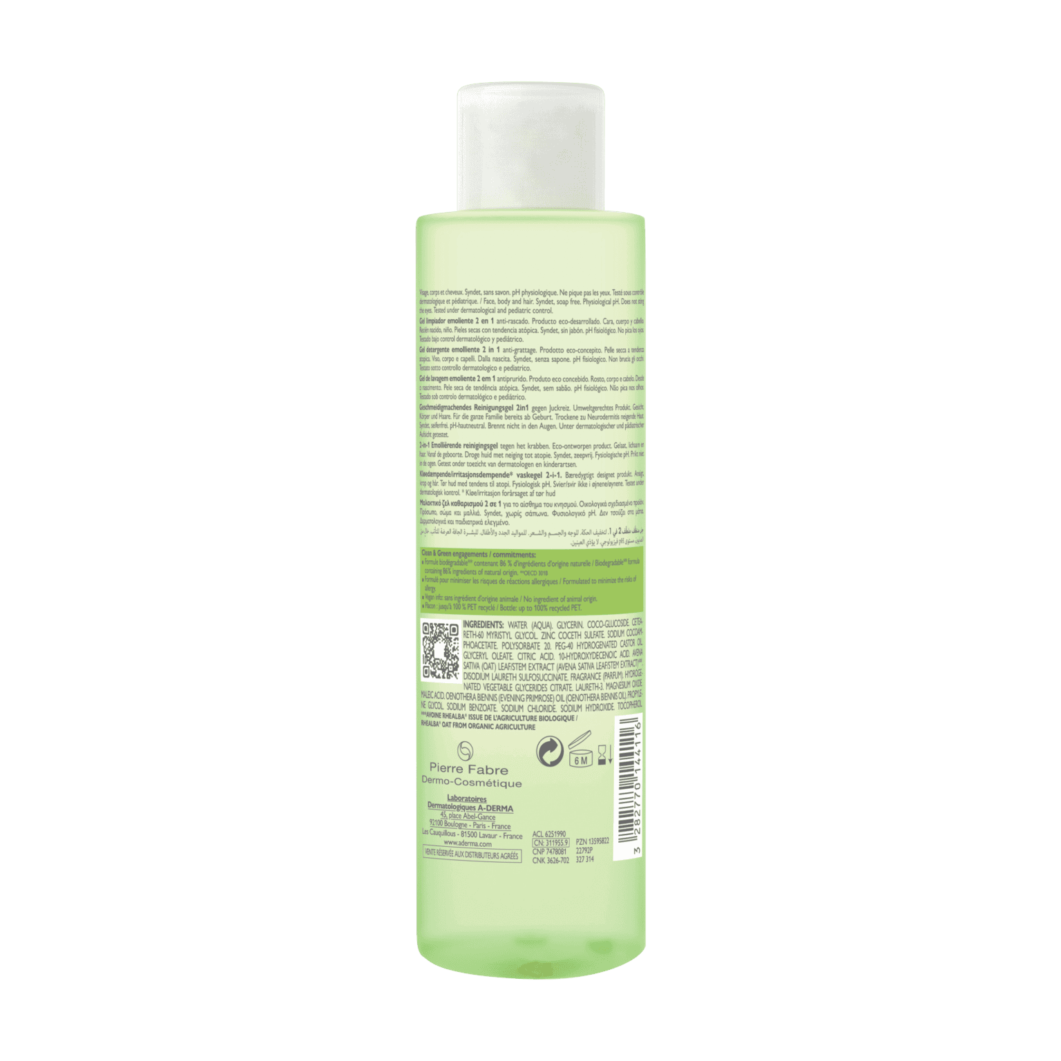 Emolijentni gel za čišćenje 2u1. Za suhu kožu sklonu atopiji. Protiv grebanja. Dojenčad, djeca.