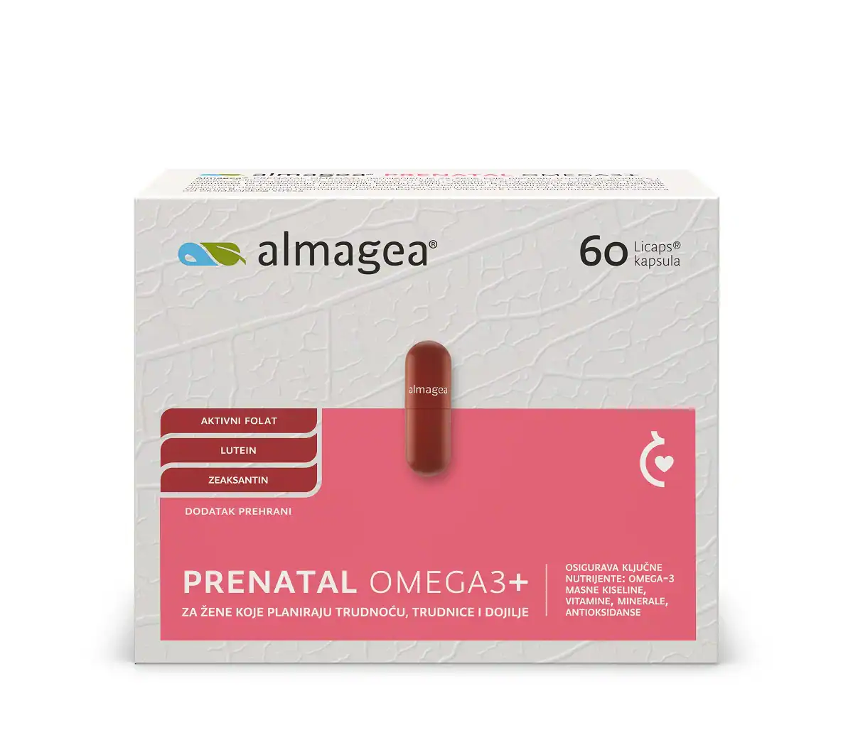 Uravnotežena i raznolika prehrana od ključne je važnosti prije, tijekom trudnoće te za vrijeme dojenja. Povećane potrebe za esencijalnim i ključnim nutrijentima u ovom prekrasnom i izazovnom razdoblju, važnim za majku i dijete, pomaže upotpuniti inovativna formula nove generacije – Almagea® Prenatal Omega3+.