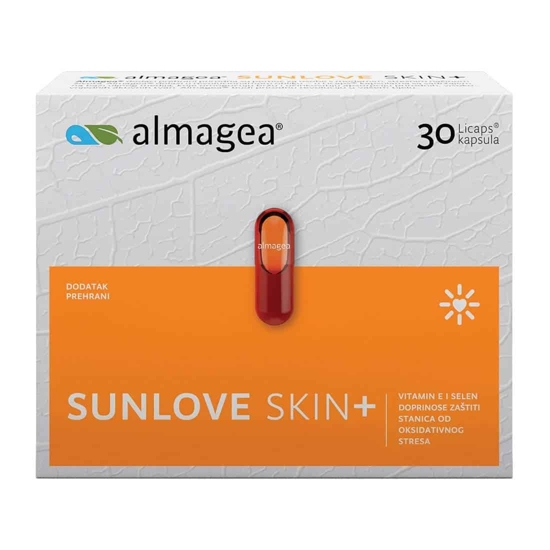 Almagea® Sunlove Skin+ dodatak je prehrani u inovativnim Licaps® kapsulama, a sadrži posebnu kombinaciju: