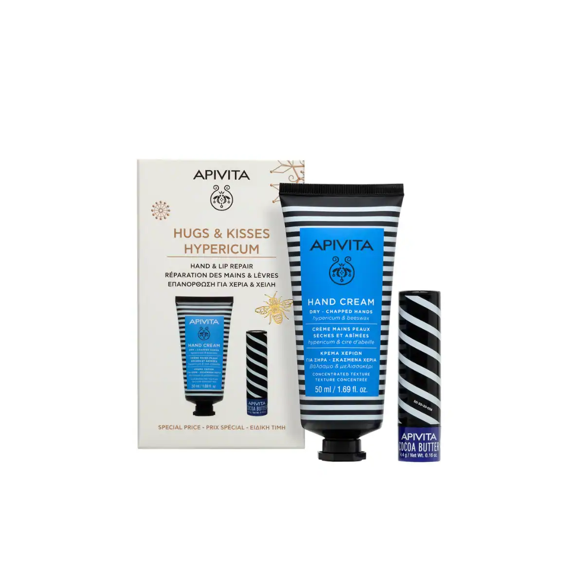 Zgodan duo za vas ili vaše najdraže u svečanoj poklon kutiji koja sadrži dva kozmetička artikla koja morate imati za popravak i zaštitu ruku i usana.