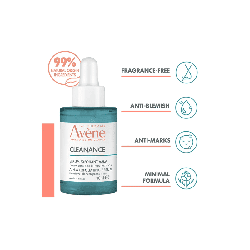 Namijenjen osjetljivoj koži i testiran na koži sklonoj aknama, A.H.A eksfolijacijski serum sadrži samo 10 sastojaka i 99% sastojaka prirodnog podrijetla.