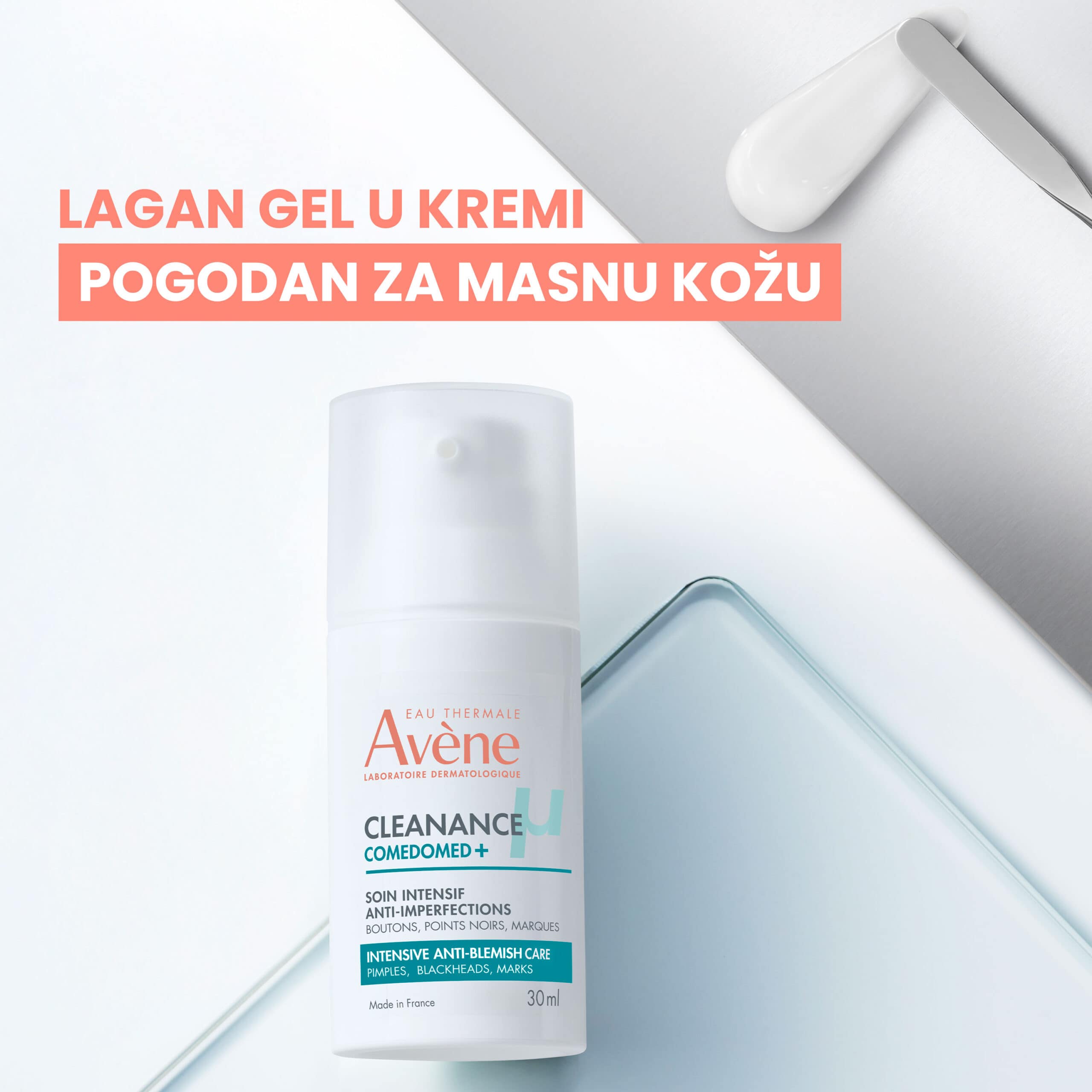 Intenzivna njega protiv nepravilnosti za masnu kožu sklonu aknama, ispitana na 4600 pacijenata. Uz jedinstvenu stručnost na području mikrokomedona, Dermatološki laboratoriji Avène sada otkrivaju pojave mikro-upala u njegovoj evoluciji. Zahvaljujući Comedoclastinu™ **, djelatnom sastojku s patentiranim svojstvima, novi Comedomed+, sada obogaćen niacinamidom, djeluje u borbi protiv mrlja u nastanku. Smanjuje prištiće, mitesere i tragove nakon akni s jednogodišnjom* učinkovitošću protiv ponovne pojave.