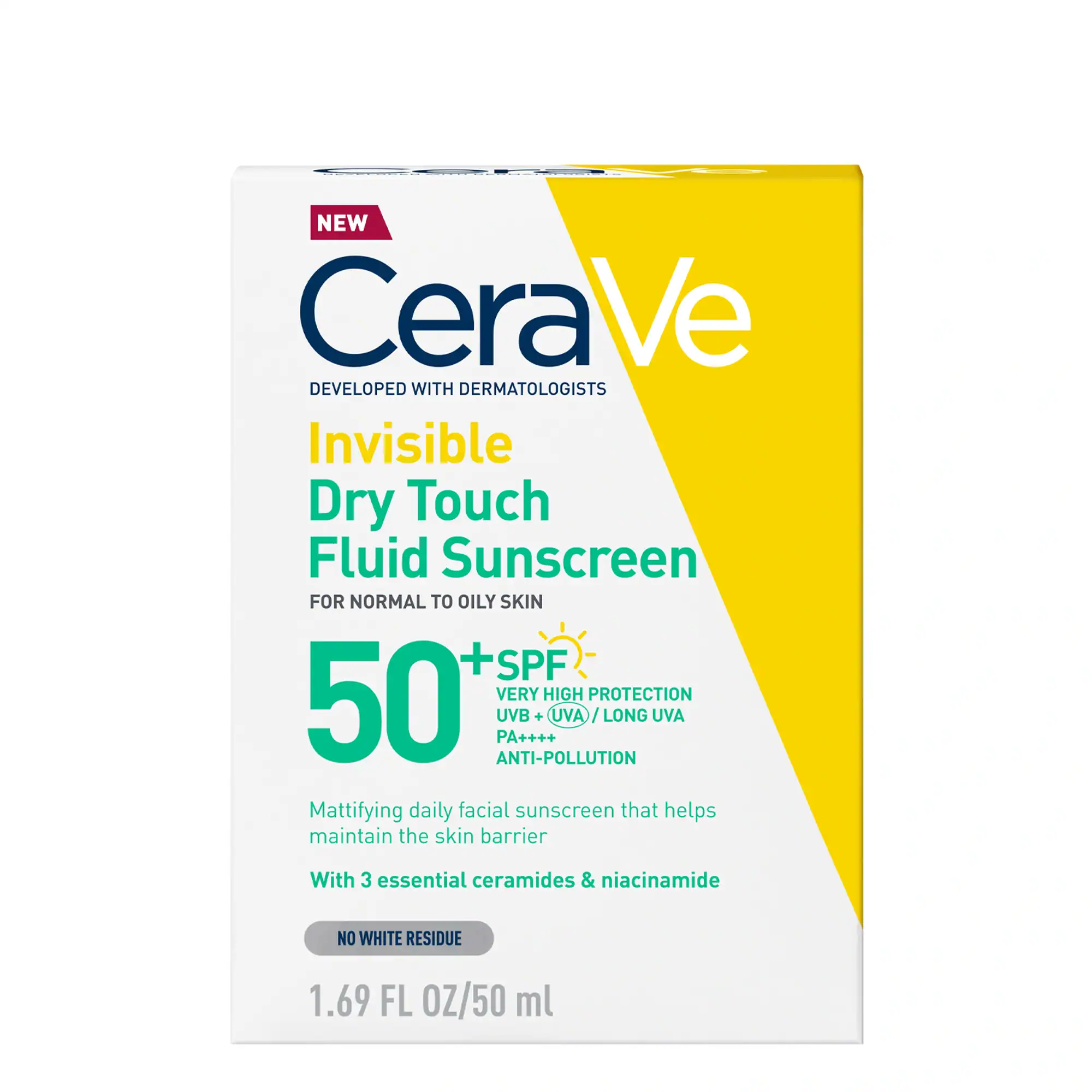 CeraVeov nevidljivi “”Dry Touch”” fluid za zaštitu od sunca pruža vrlo visoku UVB + UVA zaštitu koja će postati vaš prvi izbor. Ova je formula razvijena u suradnji s dermatolozima, a sadrži tri esencijalna ceramida i niacinamid. Ne samo da učinkovito štiti vašu kožu od štetnih UV zraka, već i aktivno jača njezinu prirodnu barijeru, istovremeno pružajući 12-satnu kontrolu masnoće i sjaja* za kožu koja ostaje svježa tijekom cijelog dana. Ova lagana i prozračna formula koja se brzo upija priprema kožu za nanošenje šminke. Nekomedogena i bez mirisa.