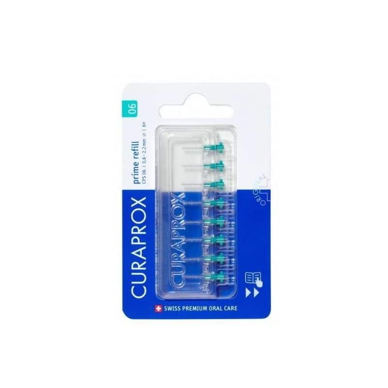 Međuzubna četkica CURAPROX CPS 06 “prime” je najmanja međuzubna četkica i odgovara jako uskim međuzubni prostorima. Jako su učinkovite, nježne i ispunjavaju cijeli međuzubni prostor, bez rizika od ozljeda. Prikladne su za čišćenje i najužih međuzubnih prostora. Redovitom upotrebom ovih četkica možemo spriječiti nastanak karijesa u međuzubnom prostoru, upalu desni i kasnije mogućeg parodontitisa (ispadanje zuba).