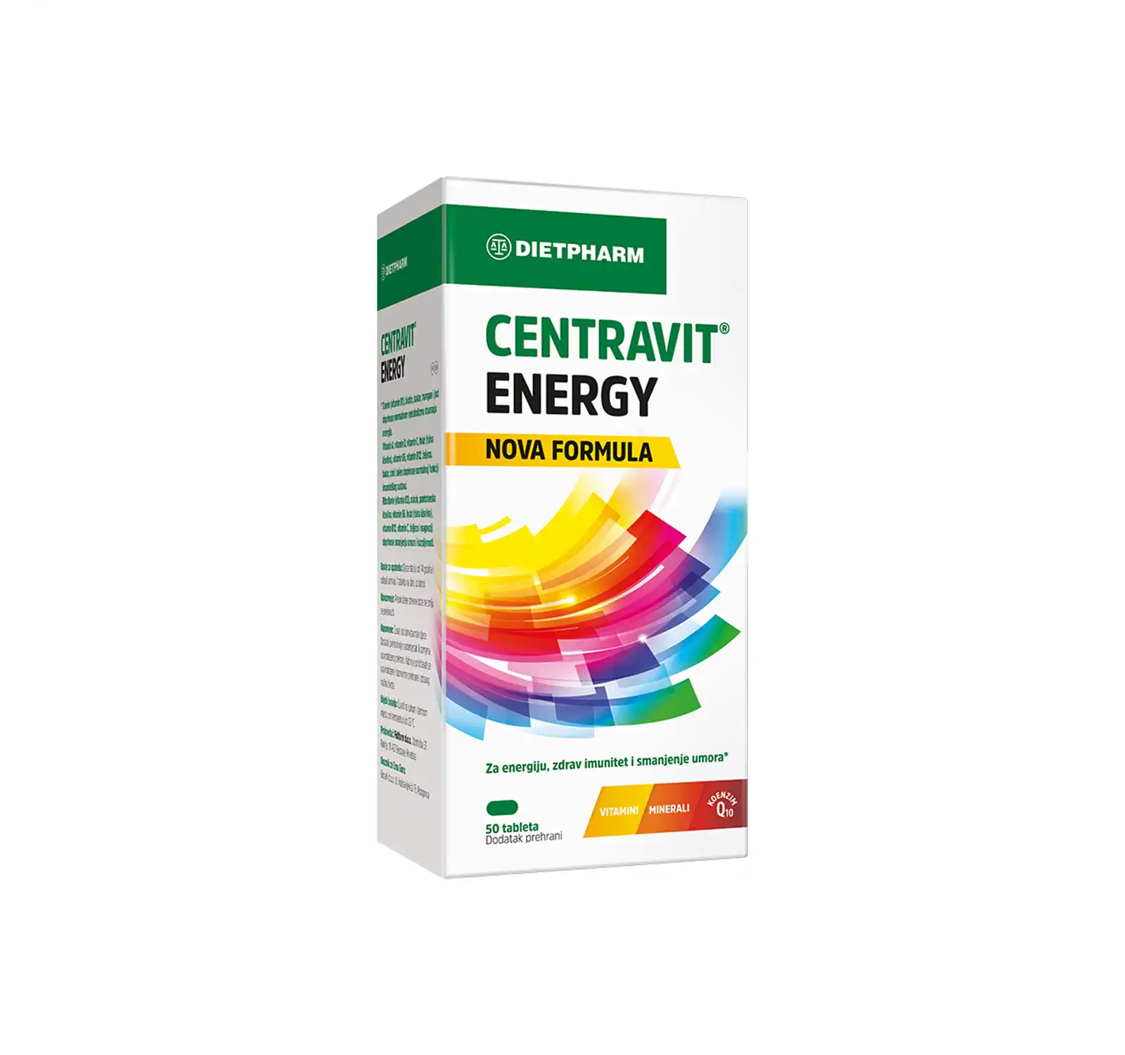 NOVA formula Dietpharm Centravit® Energy tableta pruža energiju za svaki trenutak! Osnažena kombinacija s 24 vitamina, minerala i moćnim koenzimom Q10 donosi maksimalnu energiju za čitav dan u samo 1 tableti! Potražite Centravit® Energy u pakiranjima od 30 i 50 tableta u ljekarnama i web shopovima.