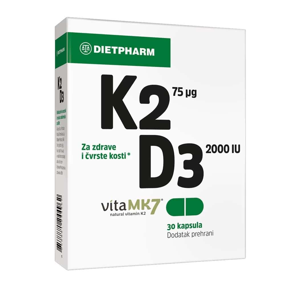 K2D3 kapsule su optimalna kombinacija vitamina za potporu i zdravlje kostiju. Vitamin K2 pomaže ugradnji kalcija u kosti. Vitamin D3 pomaže apsorpciji kalcija. K2D3 je dodatak prehrani koji u samo jednoj kapsuli dnevno doprinosi održavanju kostiju snažnima i zdravima.
