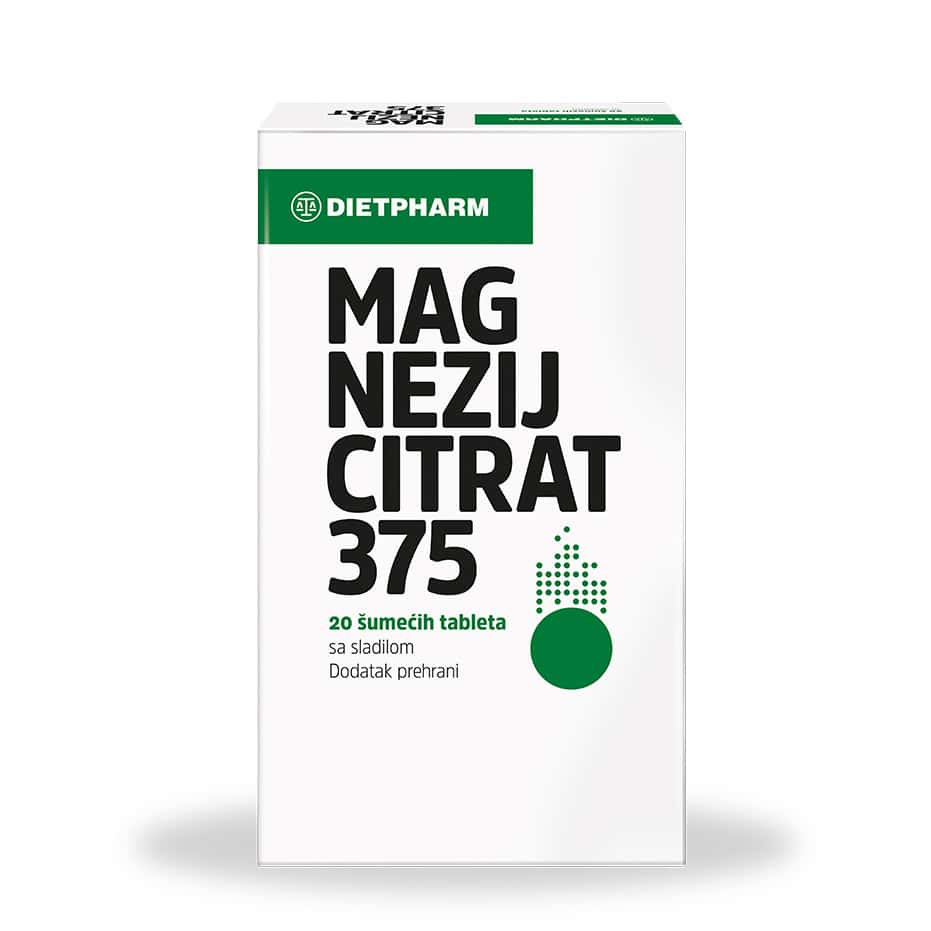 Magnezij Citrat 375 šumeće tablete namijenjene su osobama koje osjećaju umor i iscrpljenost, nedostatak energije, fizički aktivnim osobama, pojedincima za zdravlje mišića i živčanog sustava. Šumeće tablete sadrže magnezij u obliku magnezijevog citrata koji se lako i brzo apsorbira u organizmu . 1 šumeća tableta sadrži 375 mg magnezija odnosno 100% preporučenoj dnevnog unosa magnezija.