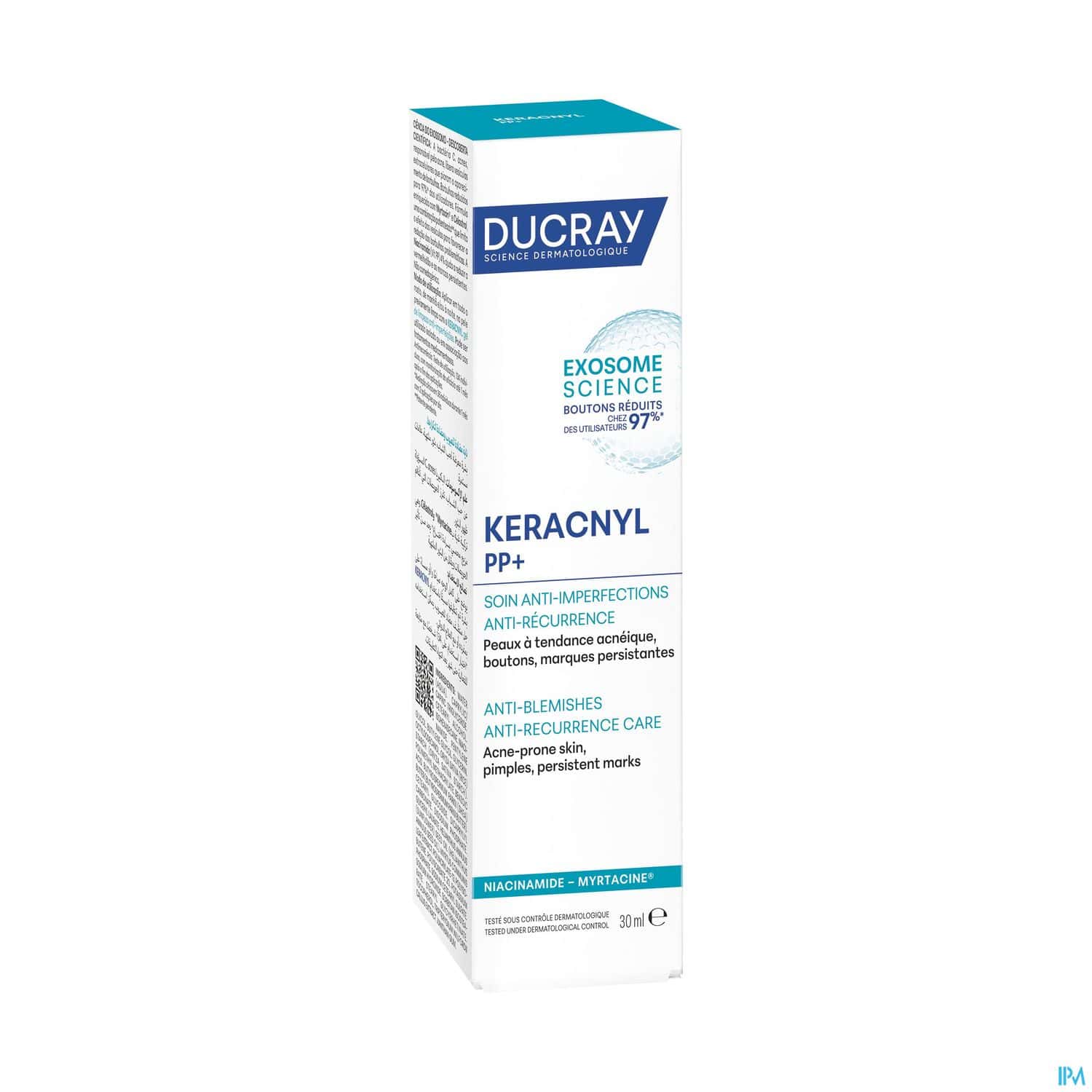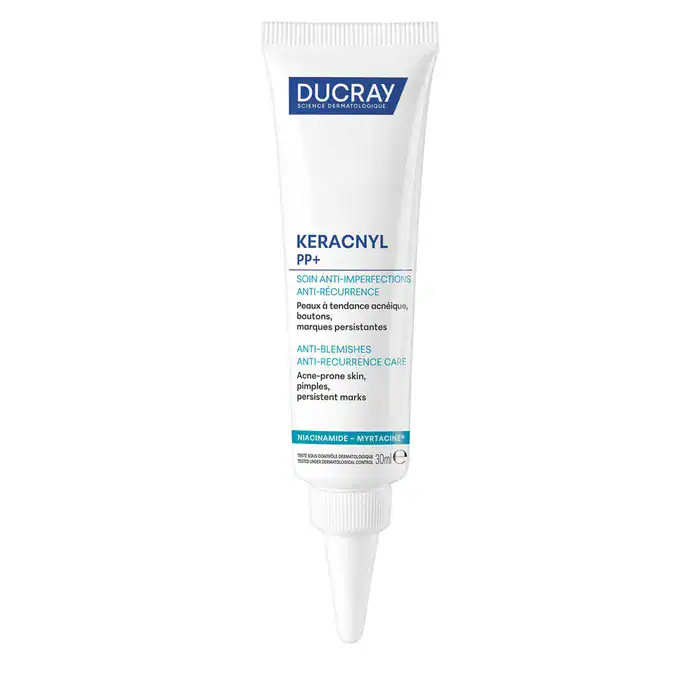 Keracnyl PP djeluje na glavne uzroke upalnih prištića (sebum, bakterija P.acnes, iritacija) zahvaljujući pojačanoj umirujućoj formuli.