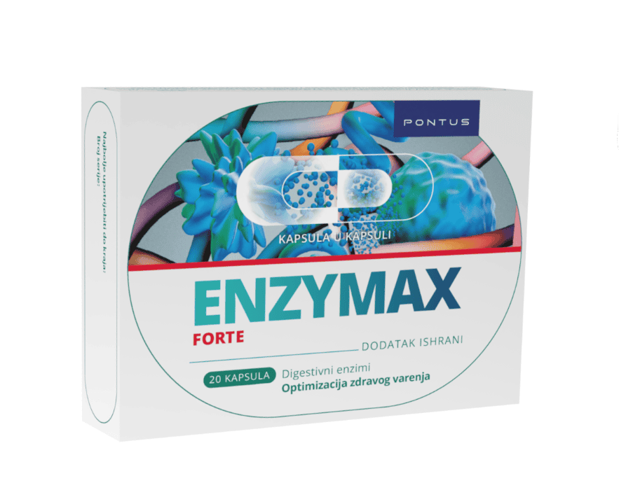 ENZYMAX Forte kapsule su dodatak ishrani sa duplo većom dozom probavnih enzima, napravljen inovativnom tehnologijom „kapsula u kapsuli“ koja omogućava dvostruko oslobađanje enzima u želucu i crijevima.