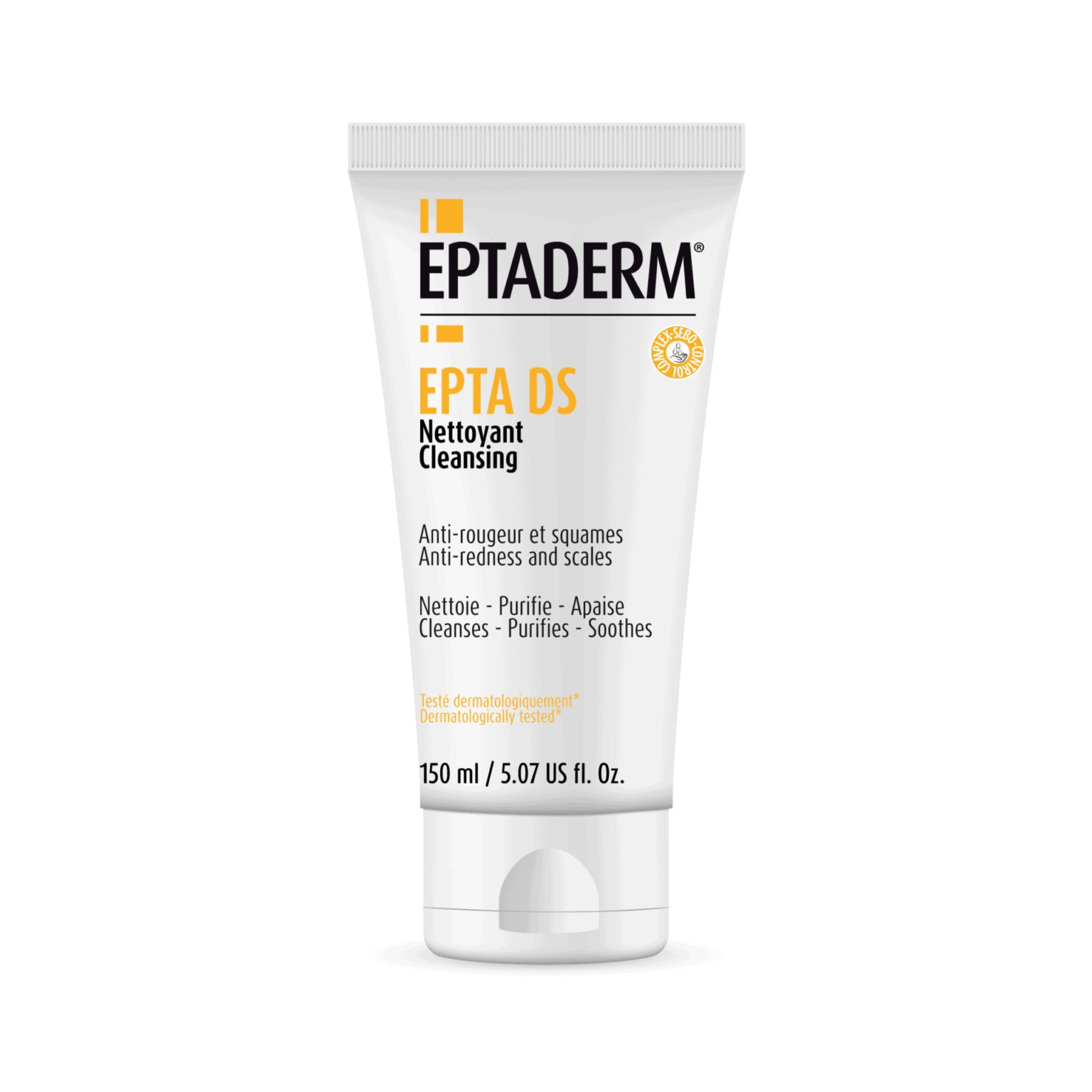 EPTA DS fluid za čišćenje je dnevni tretman za higijenu koji čisti, pročišćava i umiruje kožu sklonu crvenilu i lokaliziranoj deskvamaciji, osobito za ljuskava, masna i nadražena područja: strane nosa, obrva, čela, brade.