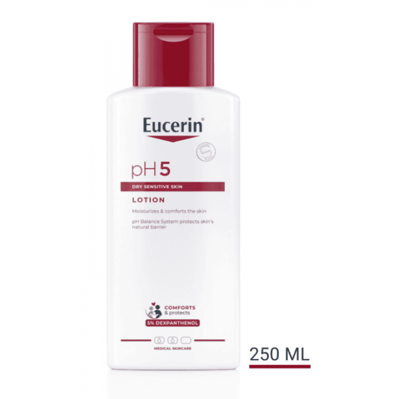 Eucerin pH5 Losion je blag, ali efikasan preparat za hidrataciju tijela koji je posebno formulisan da učini suhu, osjetljivu kožu tijela otpornijom i manje osjetljivom. Jedinstveni Eucerin pH Sistem ravnoteže sadrži pH5 Citratni pufer kako bi se obnovila i održala optimalna pH vrijednost kože. Losion za tijelo sadrži, takođe, i dekspantenol, aktivni sastojak poznat po svojim regenerativnim svojstvima.