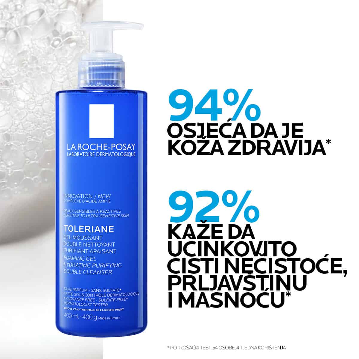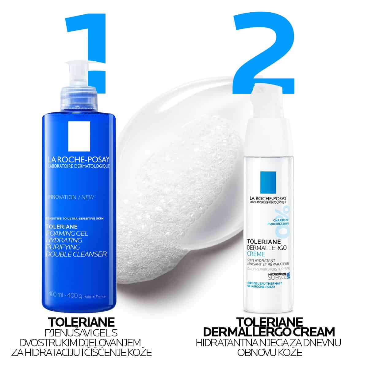 LA ROCHE-POSAY Toleriane je pjenušavi gel koji nudi dvostruku formulu za čišćenje, inspiriranu prirodnim komponentama barijere kože. Kombinira kompleks aminokiselina i blagi surfaktant s glicerinom i ceramidima za nježno, ali učinkovito čišćenje. Prikladan je za osjetljivu kožu te dubinski čisti i uklanja nečistoće bez isušivanja. LA ROCHE-POSAY Toleriane održava prirodnu ravnotežu i pH kože.