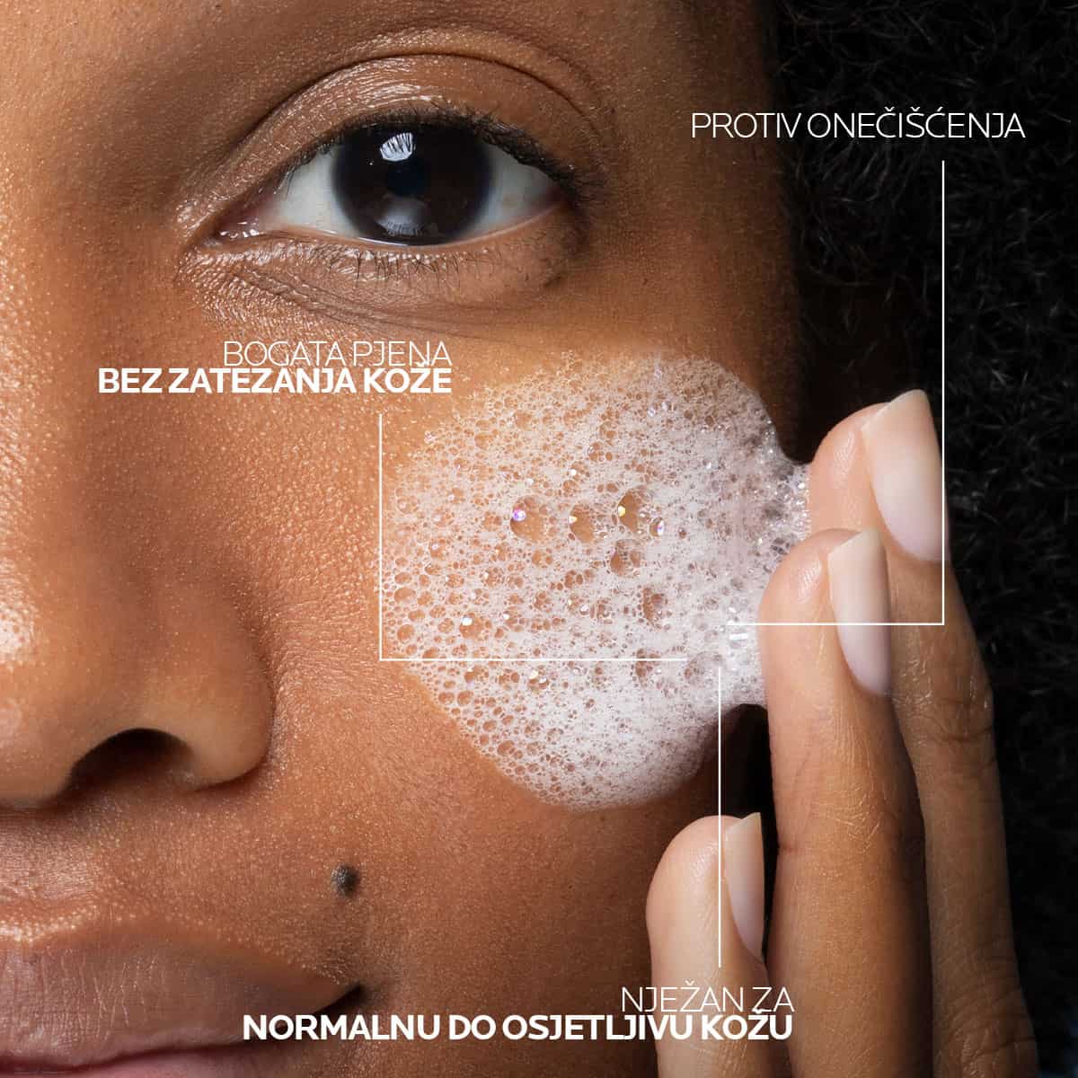 nježni pjenušavi gel s dvostrukom funkcijom čišćenja