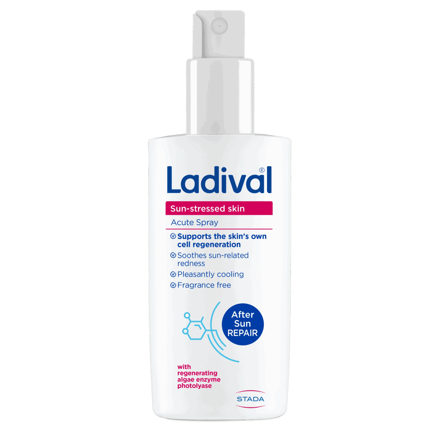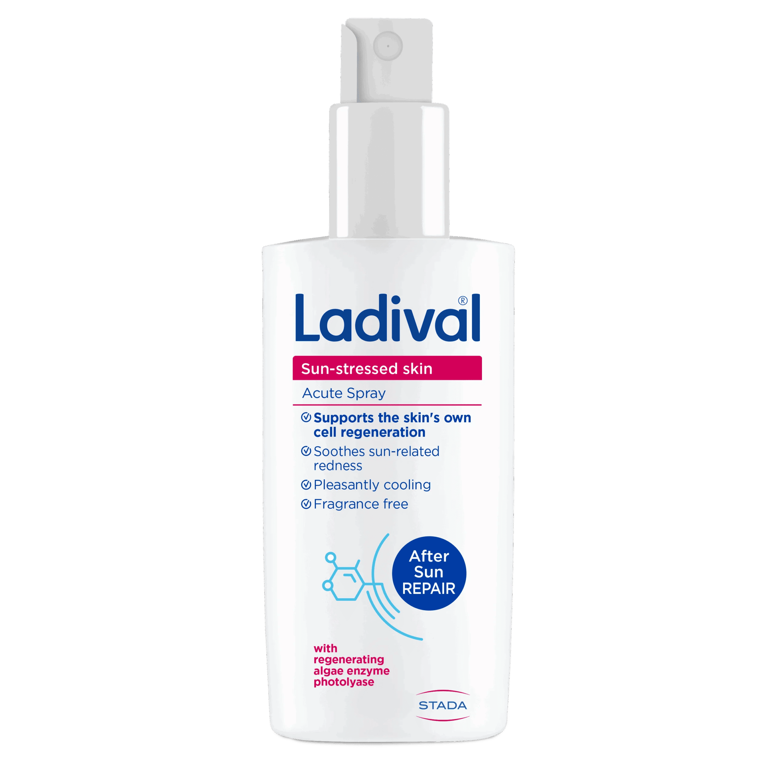 Ladival Akut sprej ublažava crvenilo uzrokovano suncem, ublažava osjećaj napetosti, vlaži i hidrira kožu.