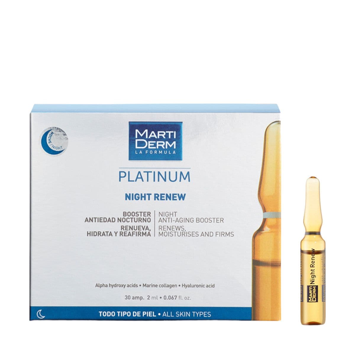 Night Renew ampule sadrže alfa hidroksi kiseline koje nježno ljušte najudaljenije slojeve kože. Morski kolagen i hijaluronska kiselina sprječavaju gubitak vode i potiču proizvodnju kolagena i elastina, hidratiziraju, štite i restrukturiraju kožu. Također smanjuje bore, zaglađuje i omekšava kožu i daje večernji ton. Pospješuje djelovanje drugih proizvoda posebno indiciranih za noćnu upotrebu.