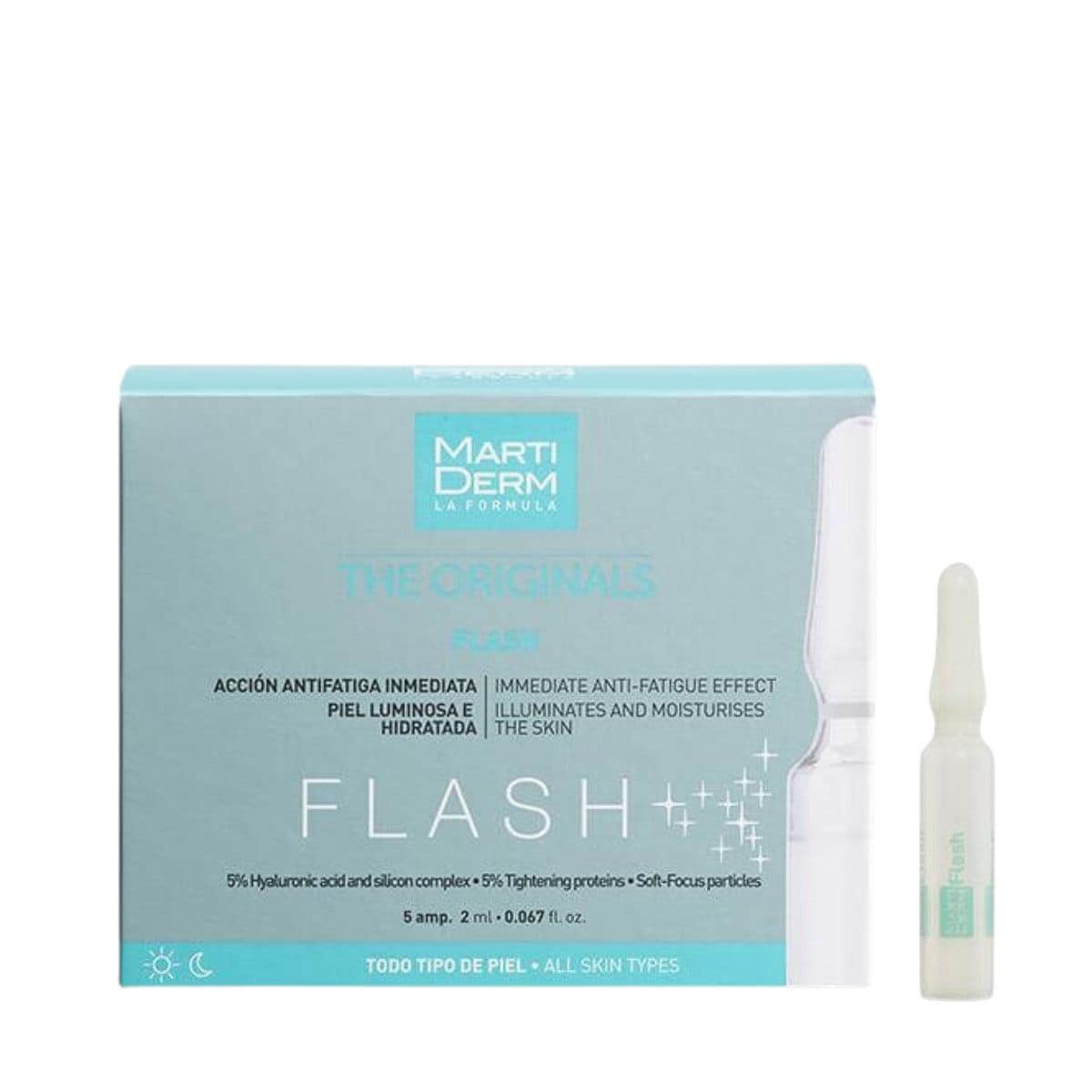 Flash ampula je formula stvorena za postizanje trenutnog učinka liftinga i protiv umora te za više hidratacije i sjajniju kožu. Instantna formula protiv umora koja vraća sjaj, čvrstoću i dobar izgled kože.