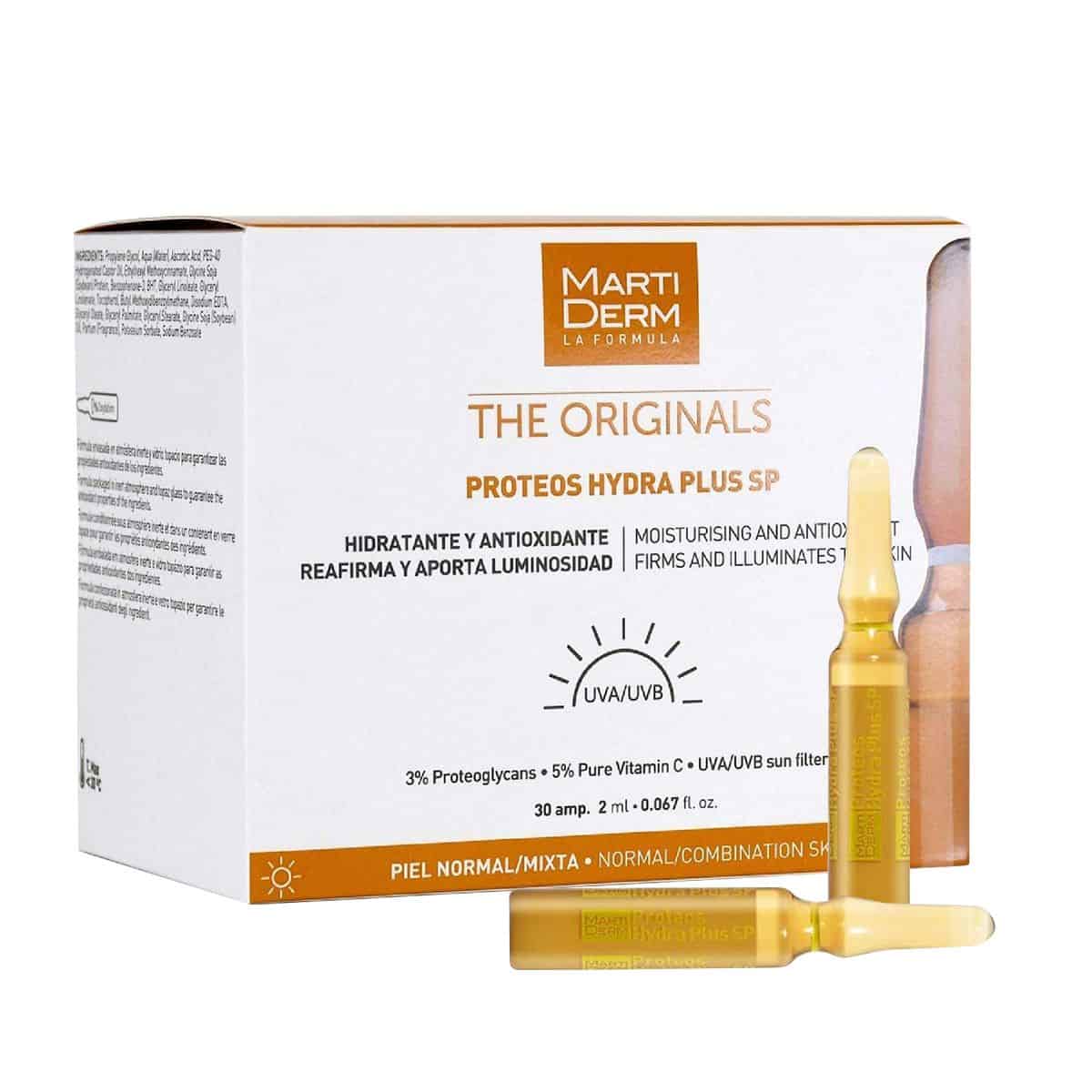 Hidratantna i učvršćujuća formula s proteoglikanima i vitaminom C koja intenzivno hidratizira, čini kožu sjajnijom, ima antioksidacijsku moć te umanjuje vidljivost bora. Proteos Hydra Plus tvrtke MartiDerm dolazi u obliku ampule s vitaminom C.