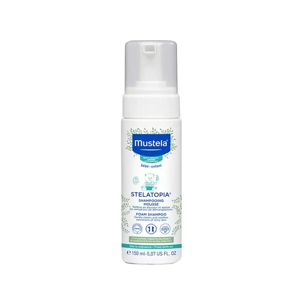 Mustela Stelatopia pjena za čišćenje vlasišta obogaćena je sastojkom Avocado Perseove, patentiranim sastojkom prirodnog porijekla koji osnažuje kožnu barijeru posebno kod djece koja imaju atopijski dermatitis. Pjena je idealna za tretiranje i prevenciju tjemenica kod novorođenčadi. Nježna formula bez sapuna i parabena nježno čisti bebino vlasište.
