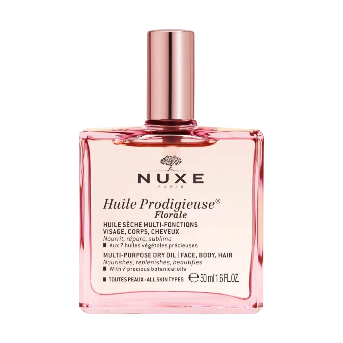 Dašak slatke i romantične ženstvenosti pretočen je u čaroliju novog Florale suhog ulja, koje svojim svježim i blistavim mirisom nosi dah proljeća i rascvjetanog cvijeća. Sa 7 dragocjenih biljnih ulja, ovo višenamjensko suho ulje hrani, njeguje i uljepšava lice, tijelo i kosu.