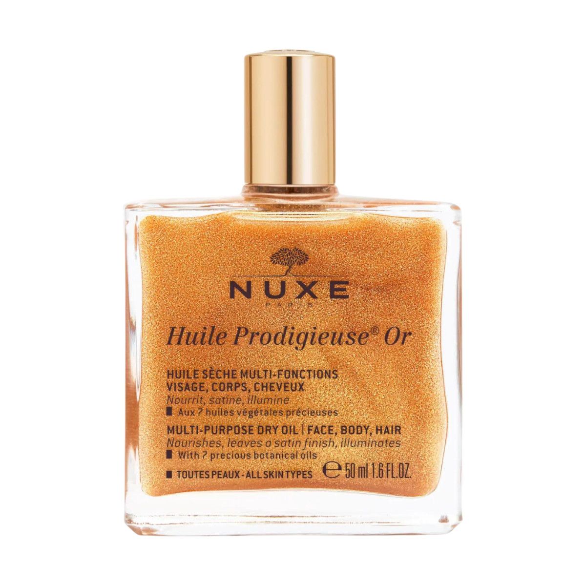 Čudesno suho ulje sa zlatnim sjajem sadrži biserne čestice zlatnog odsjaja prirodnog porijekla, izuzetno nježne i pažljivo birane zbog svog prekrasnog sjaja. Zahvaljujući njima, zlatno ulje na koži ostavlja sjenu ‘karamelizirane’ svjetlosti, sličnu prirodnoj boji preplanule puti, pa divno naglašava ljepotu kože, a ljeti i preplanulost. U jednom potezi hrani i njeguje kožu i kosu, uz jedinstven nemasan osjećaj i kultni, očaravajući miris.