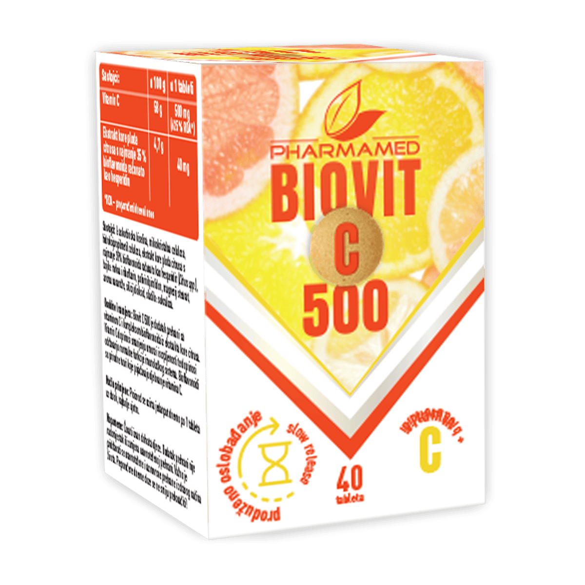 Biovit C 500 je dodatak prehrani s vitaminom C i kompleksom bioflavonoida iz ekstrakta kore citrusa. Vitamin C doprinosi smanjenju umora i iscrpljenosti te doprinosi održavanju normalne funkcije imunološkog sistema. Bioflavonoidi su prirodne tvari koje pojačavaju djelovanje vitamina C.