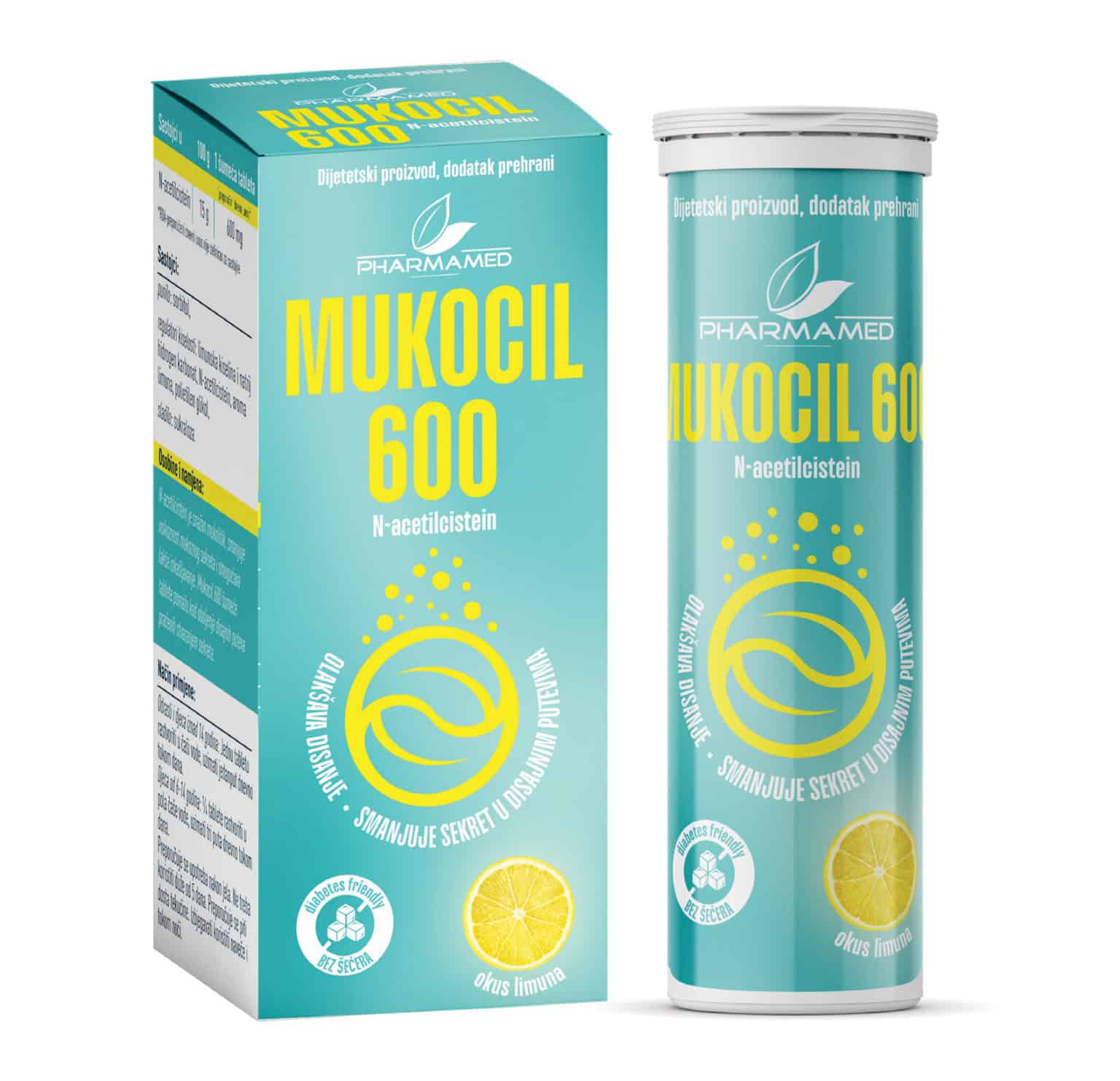 Sastav/Djelovanje : Mukocil tablete sadrže N-acetilcistein 600mg. N-acetilcistein efikasan u tretmanu simptoma oboljenja disajnih puteva praćenih stvaranjem šlajma. N-acetilcistein je antioksidans i kao snažan mukolitik smanjuje viskoznost mukoznog sekreta, razlaže i olakšava izbacivanje šlajma. Ugodne je arome limuna i pogodan za dijabetičare.