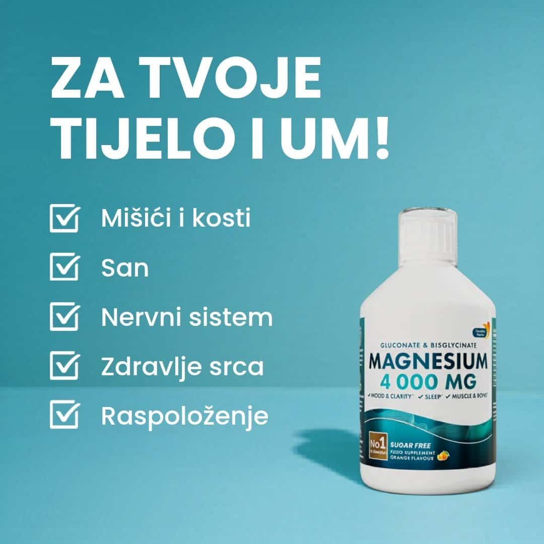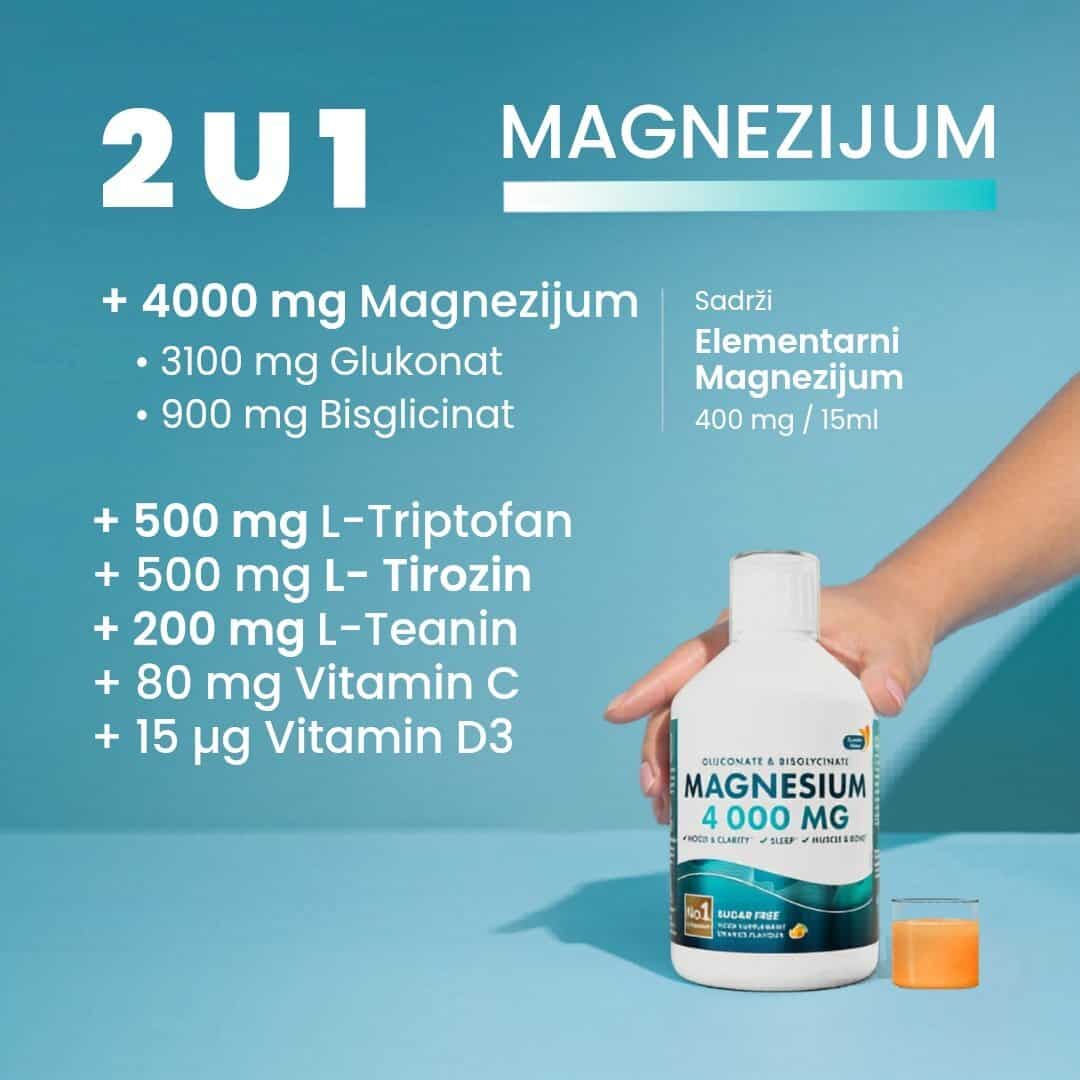 Magnezijum 4000 mg sadrži kombinaciju dva visoko kvalitetna organska oblika magnezijuma za bolju apsorpciju i djelovanje:
