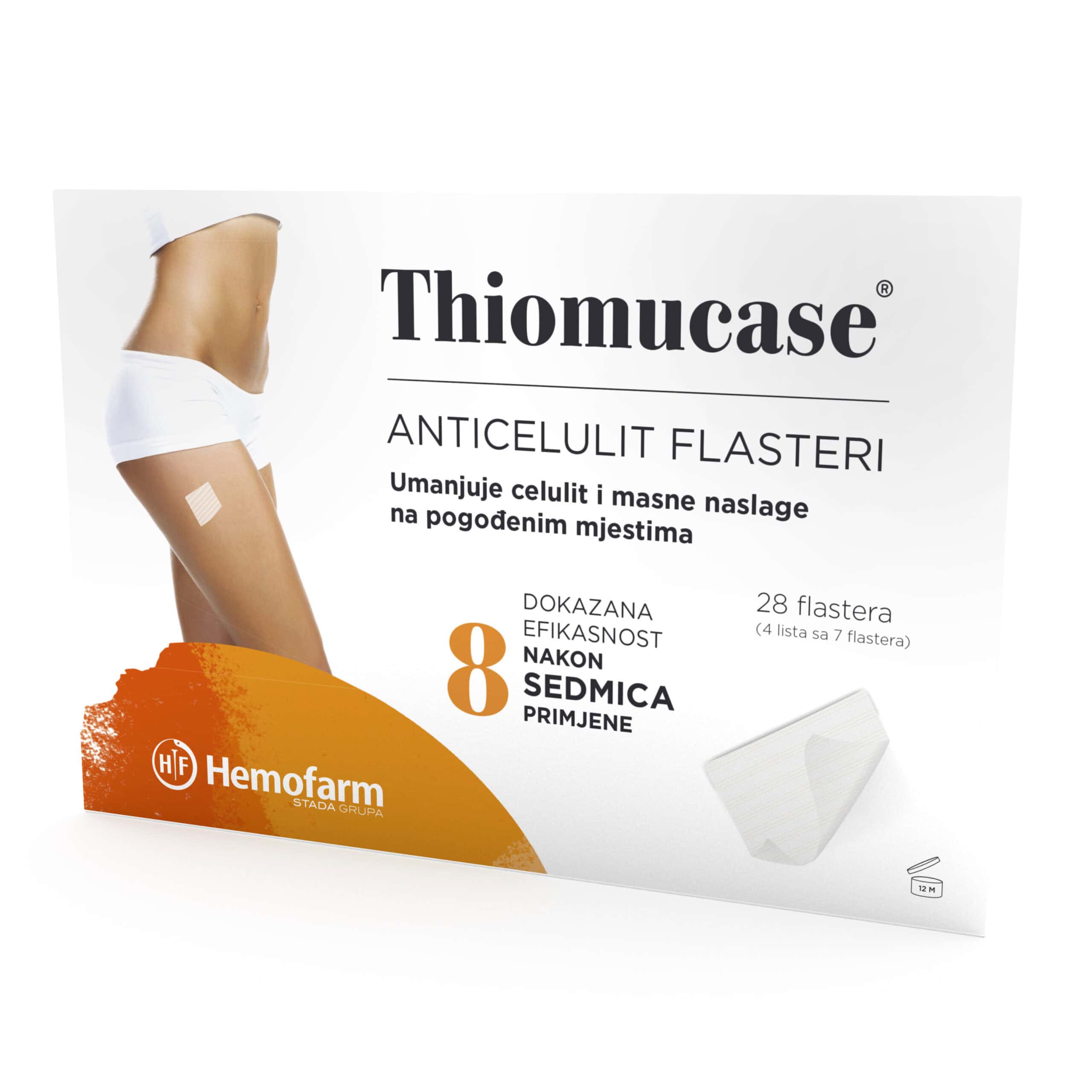 Thiomucase anticelulit flaster je multikomponentni preparat sa prirodnim sastojcima koji djeluju na poboljšanje cirkulacije, stimulaciju metabolizma, sagorijevanje masti i eliminaciju suvišne vode iz dijelova tijela zahvaćenih celulitom. Efikasan je za različite dijelove tijela – može se koristiti na butinama, stomaku, rukama i drugim područjima sa lokalizovanim masnim naslagama.