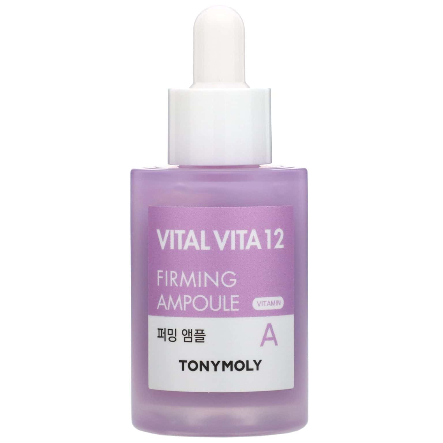 Tonymoly Vital Vita 12 ampule prepune vitamina, pružaju rješenje za sve uobičajene probleme s kožom. Pomiješajte i uskladite formule kako biste ciljali vaše specifične potrebe kože! Tonymoly Vital Vita 12 firming ampula s vitaminom A sadrži peptidne komponente za jačanje kože i smanjenje finih linija.