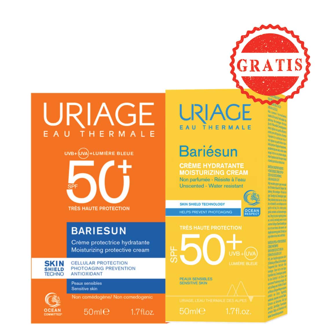 Uriage BARIESUN HIDRATANTNA KREMA SPF50+ kombinira visokoučinkoviti filterski kompleks i dva dermatološka patenta za zaštitu kože, sprječavanje oštećenja stanica i foto starenja kože uzrokovano UVA, UVB zrakama i plavim svjetlom.