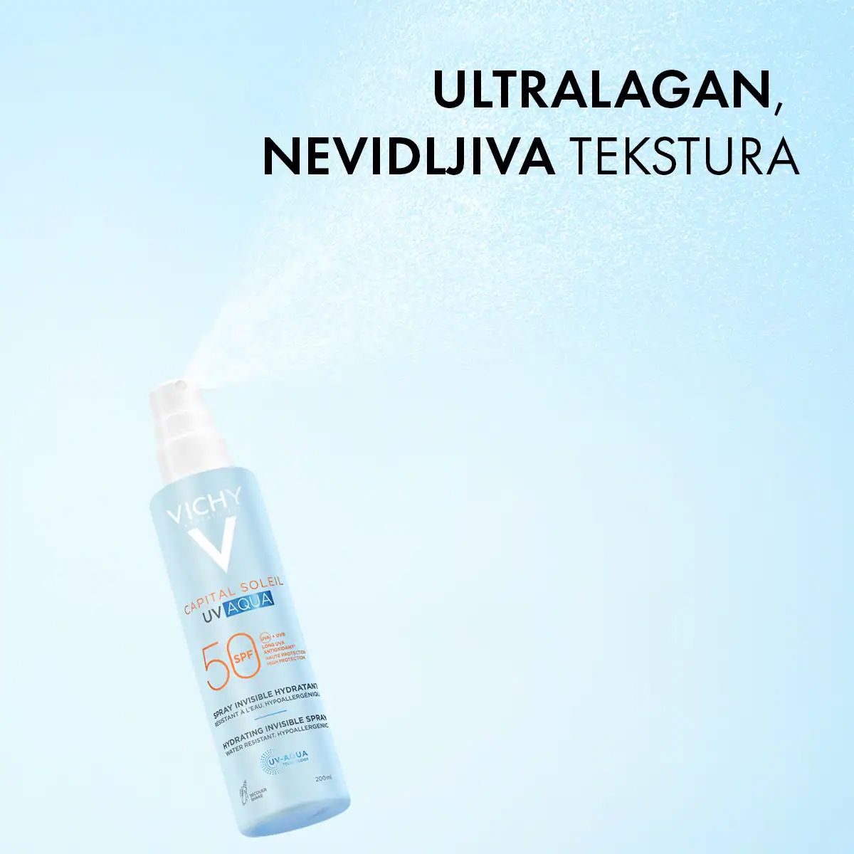 Vichy Capital Soleil UV AQUA hidracijski sprej za lice i tijelo SPF50 200 ml