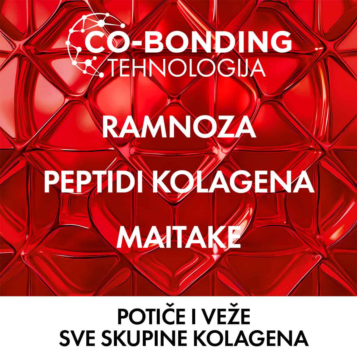 S 15 godina istraživanja, više od 8900 pregledanih molekula i 25 znanstvenih publikacija, Vichy predstavlja kolagen revoluciju, Co-Bonding tehnologiju. Ova tehnologija potiče i veže sve skupine kolagena za jaču kolagen mrežu.
