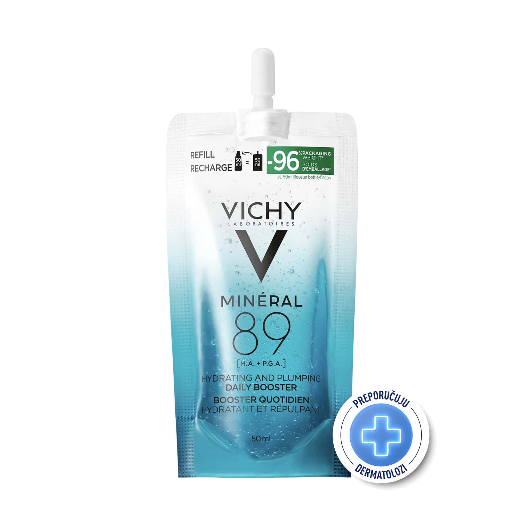 Vichy Mineral 89 je svakodnevni pojačivač njege kože, bogat Vichy vulkanskom vodom i legendarnom dermatološkim aktivnim sastojkom, hijaluronskom kiselinom. Koristi se za hidrataciju i revitalizaciju svih tipova kože, u borbi protiv suhoće i osjetljive kože. Ova jača i puna formula hrani vašu kožu s +41% trenutne hidratacije, čineći je blistavijom i zdravijom te +21% punijom**. Formula poboljšava prirodnu barijeru vaše kože, za snažniju kožu do +71%***.