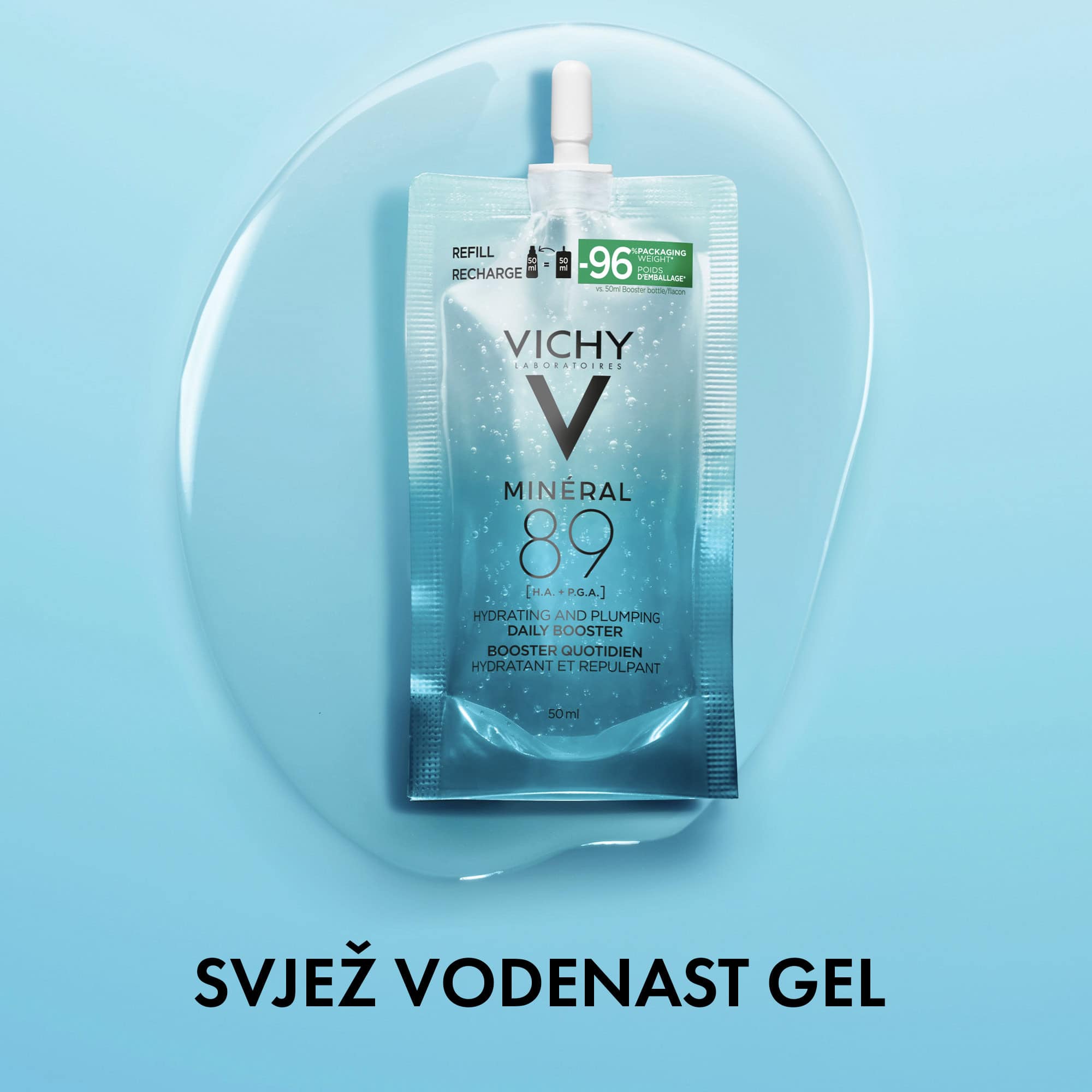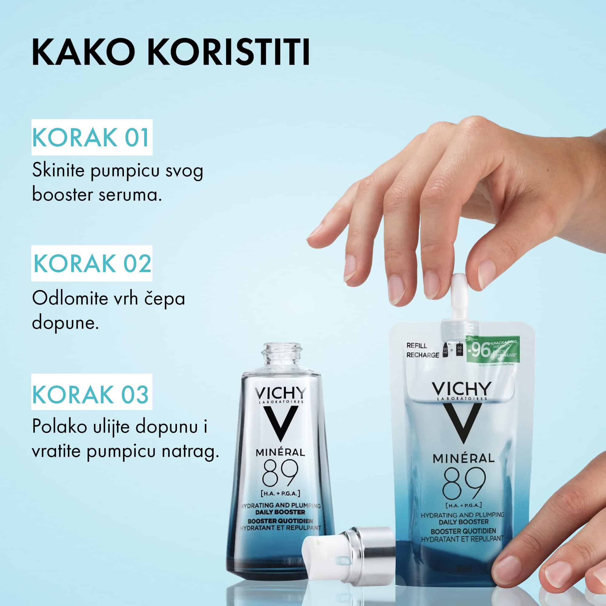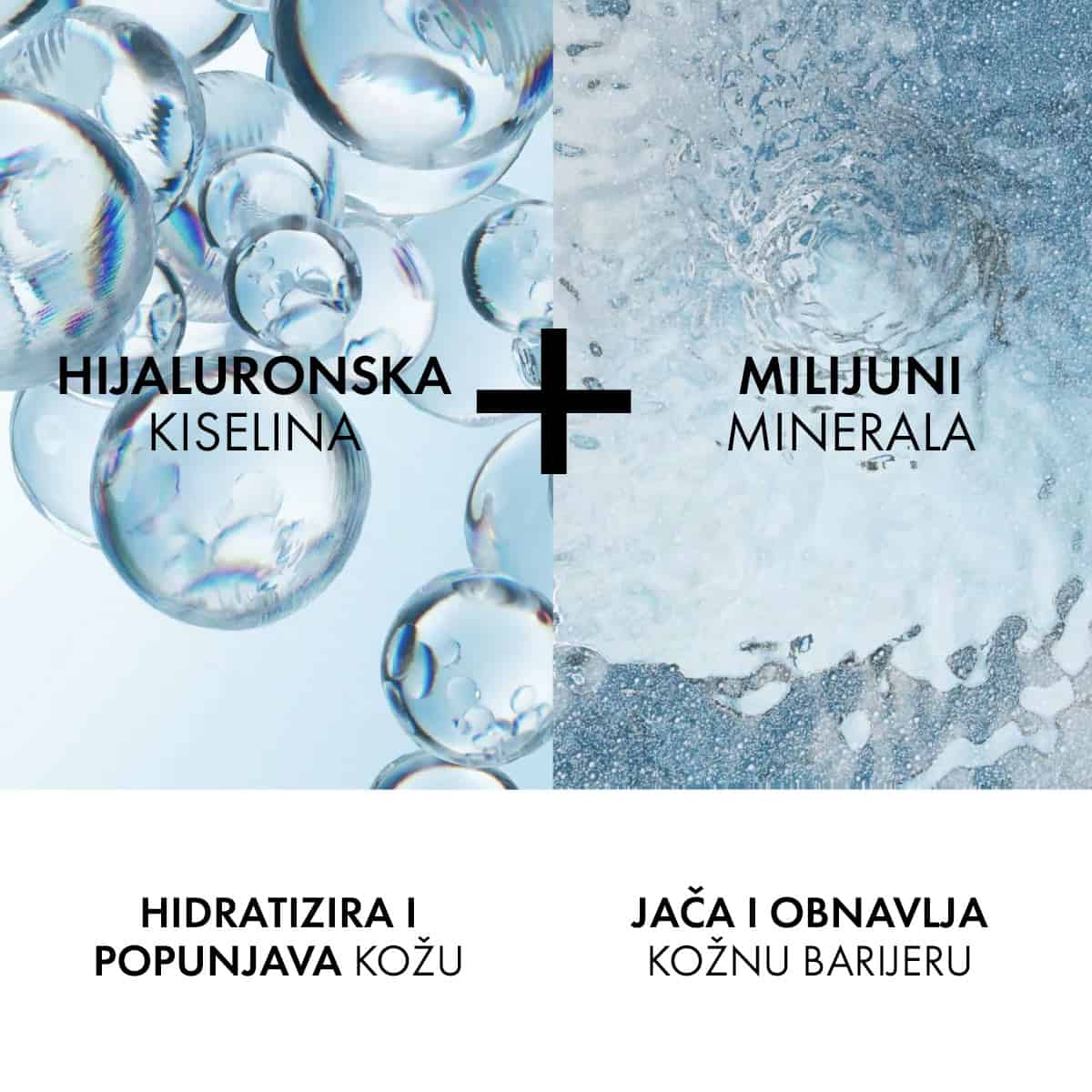 • Revolucionarna formula za njegu kože: visoka koncentracija od 89% vulkanske vode Vichy obogaćene s 15 esencijalnih minerala i čistom hijaluronskom kiselinom