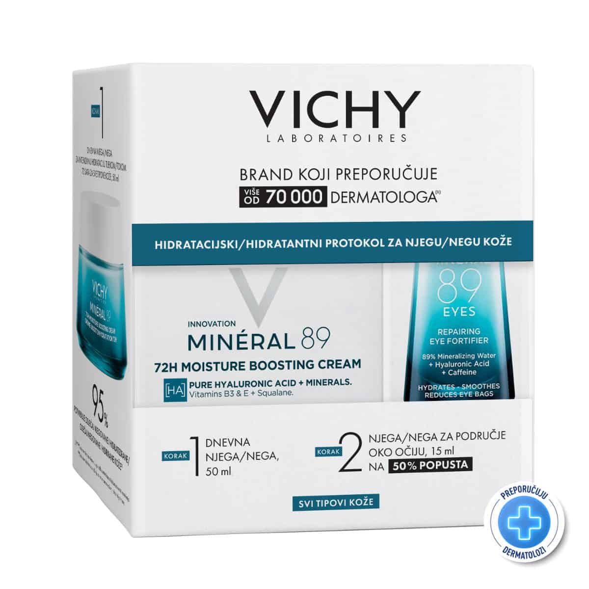 MINÉRAL 89 Krema za intenzivnu hidraciju tijekom 72 sata za sve tipove kože, 50 ml +VICHY MINÉRAL 89 EYES Snažnija i punija koža oko očiju s hijaluronskom kiselinom, 15 ml