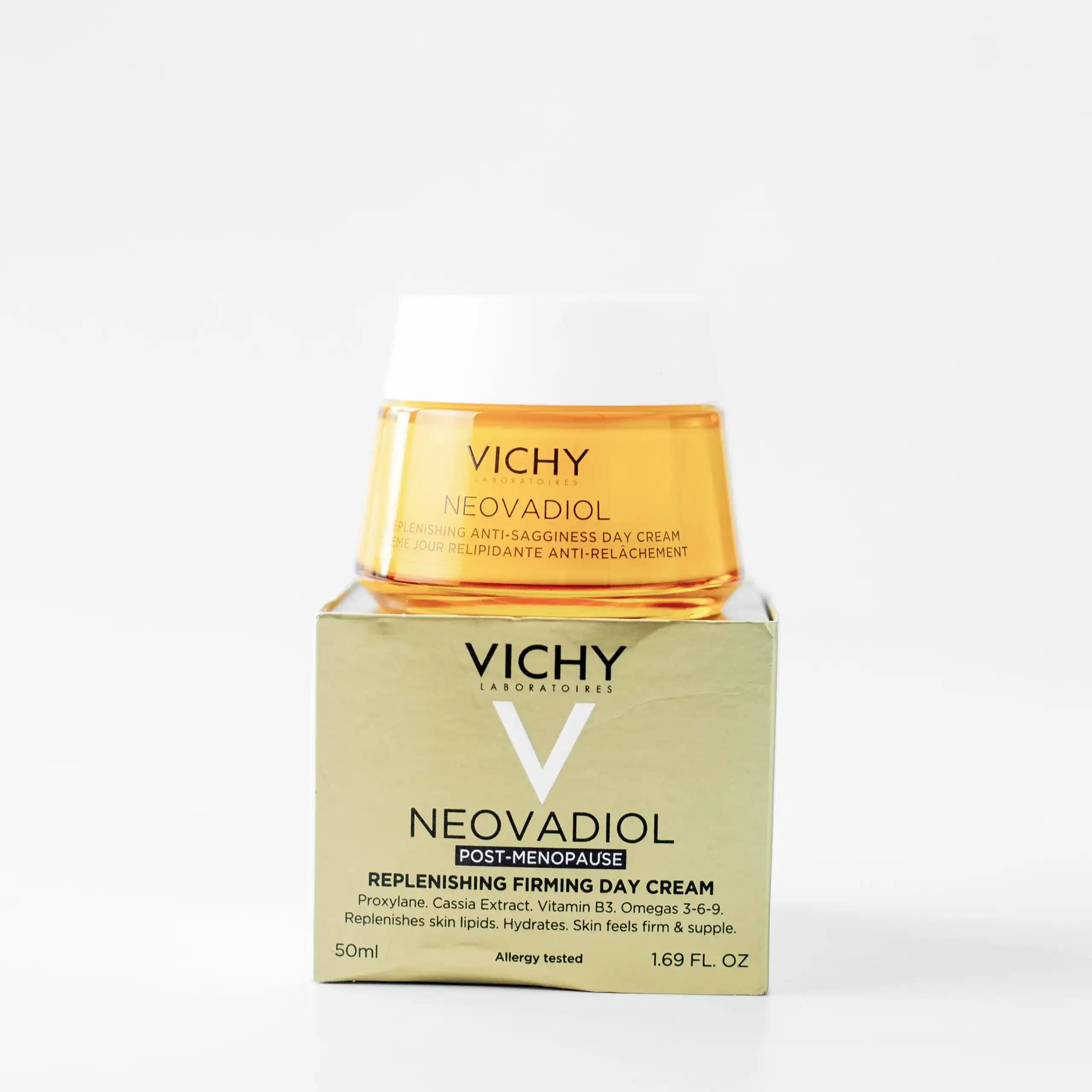 NEOVADIOL DNEVNA KREMA ZA OBNOVU PROTIV OBJEŠENOSTI reaktivira mehanizme kože: obješenost, gustoću, bore. Sadrži snažan spoj koncentriranih dermatološki aktivnih sastojaka: