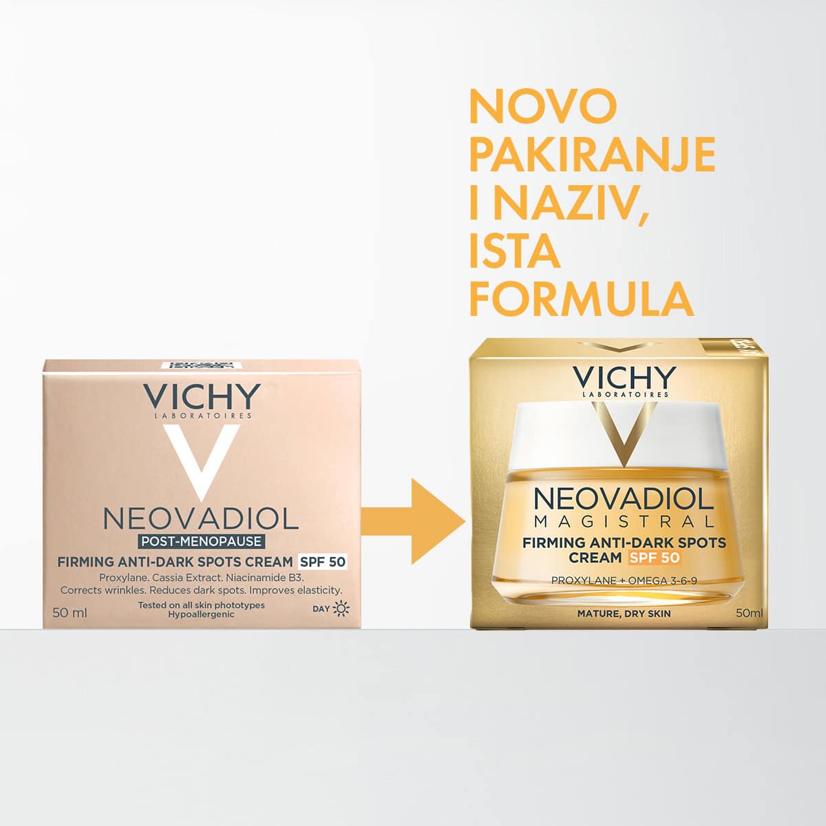 Ponovno otkrijte nahranjenu, definiranu i ujednačenu kožu uz Vichy Neovadiol Magistral kremu SPF 50.